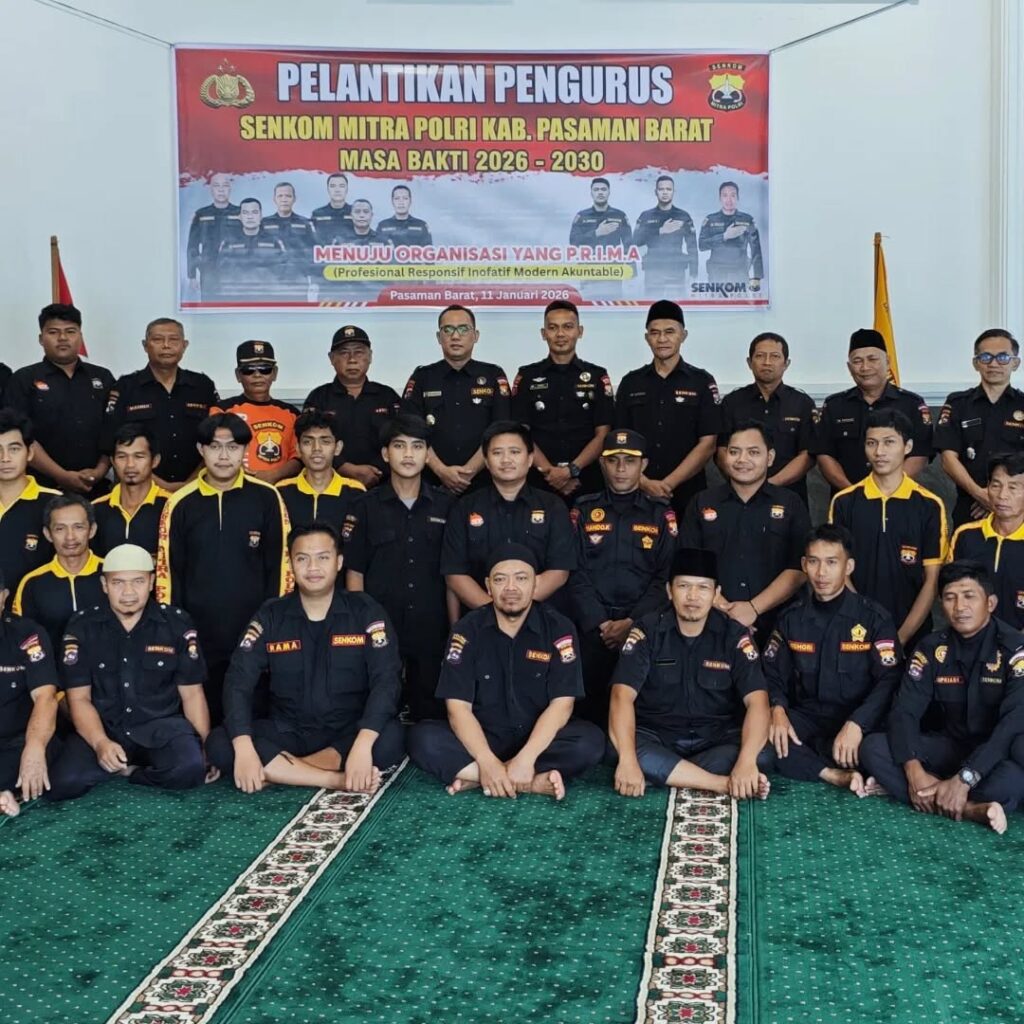 Pasaman Barat (24/1). Ketua Pengprov Senkom Mitra Polri Sumatera Barat, Riki Abdillah, secara resmi melantik Ketua dan Pengurus Senkom Mitra Polri Kabupaten Pasaman Barat masa bakti 2026–2031, pada Minggu (11/1) silam. Acara pelantikan berlangsung di Aula Pertemuan Sekretariat Senkom Kabupaten Pasaman Barat.
